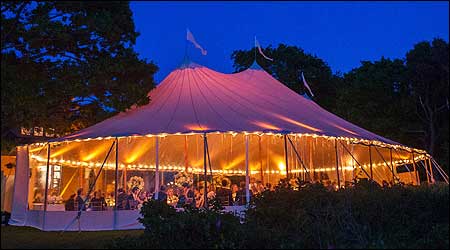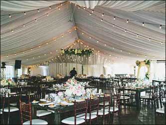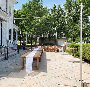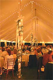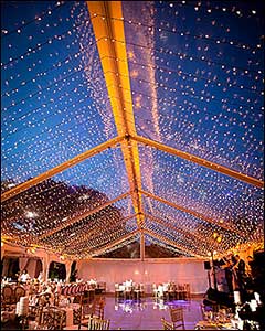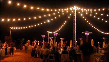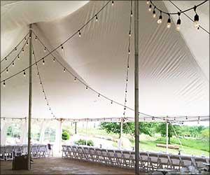 Strings can also be run across the peak of the tent or outdoors using Amerevent's light string support stands.