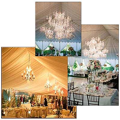 Larger metal chandeliers provide more light and being larger are better suited for wider tents.