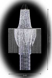 CHANDELIERS add formal grace and beauty to an event. Our large crystal bead chandeliers are re-commended for tents 30' wide or greater due to their peak height. These are our largest chandeliers, 3-ft wide and 6-ft tall and include a dimmable 300WIE LED bulb. When spaced every 20-ft they can provide enough light by themselves for an evening formal event.