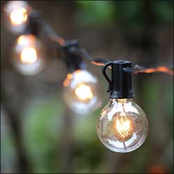 BISTRO BULB LIGHT STRINGS are similar to clear bulb strings but heavier duty - suitable for longer runs in the air (although any string can be used for long runs with a supporting guy wire). Cost is just slightly higher than 2" globe bulb strings.